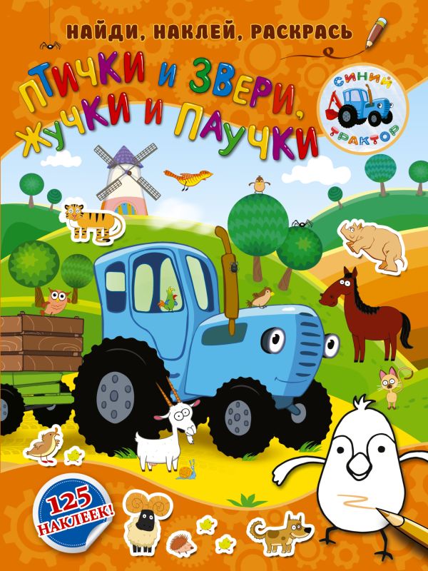 Синий трактор: найди, наклей, раскрась